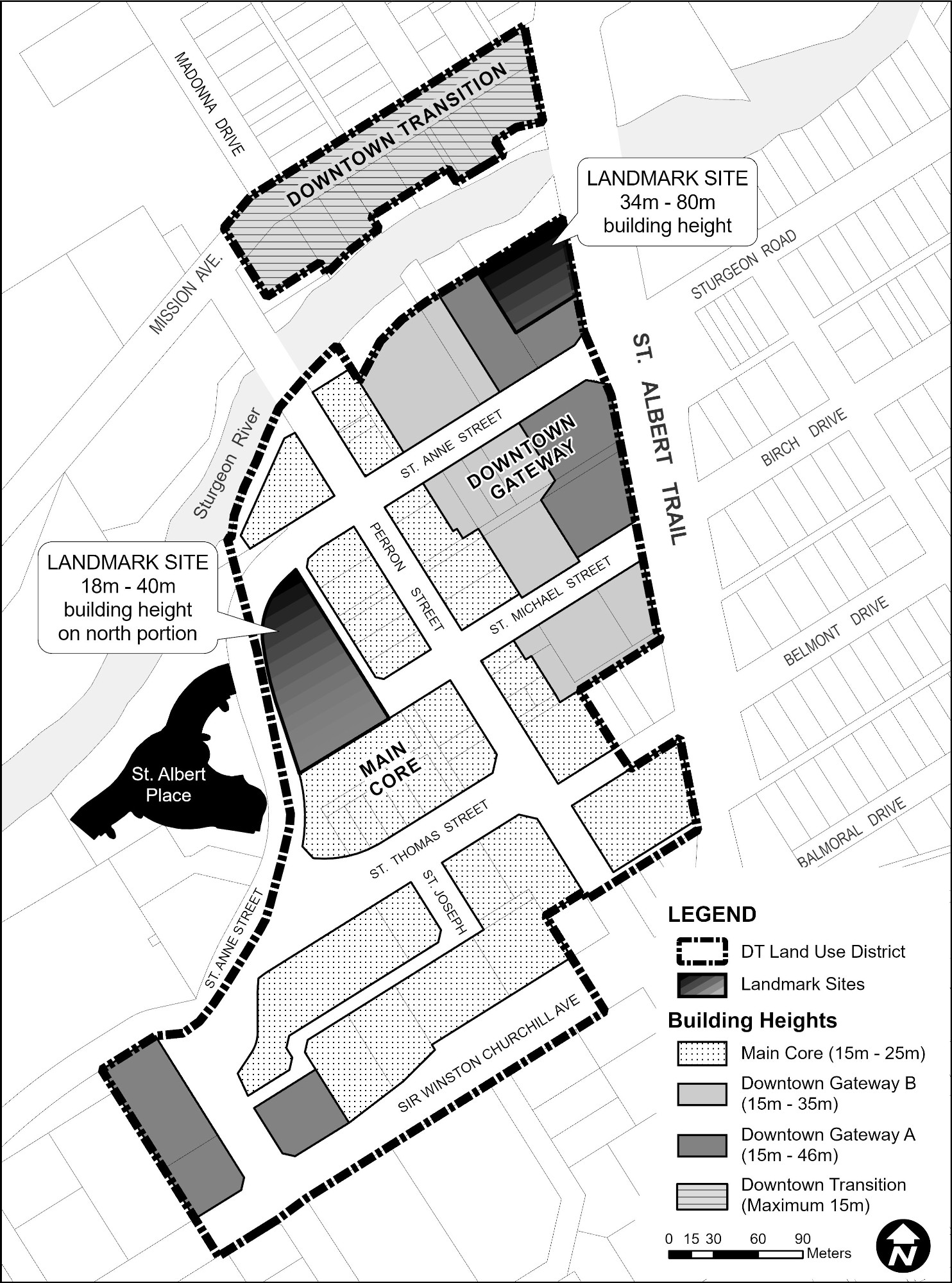 - As illustrated in Figure 5-9, building height in the DTN District is as follows: